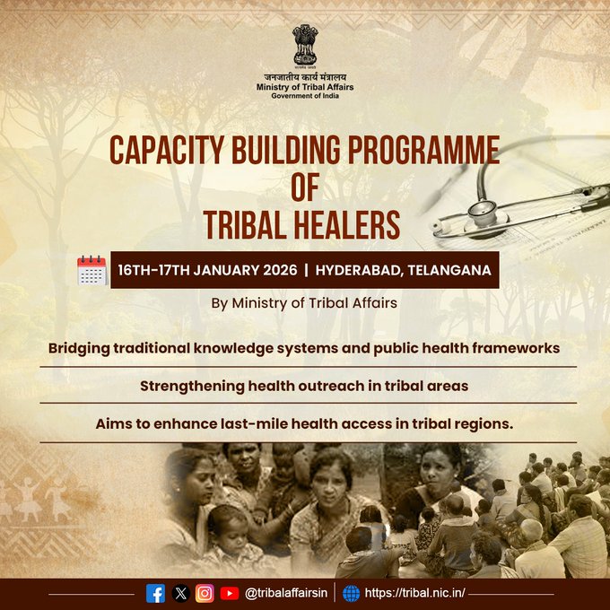 India is set to take a landmark step in strengthening healthcare delivery in tribal regions with the launch of the country’s first National Capacity Building Programme for Tribal Healers, to be organised by the Ministry of Tribal Affairs on 16 and 17 January 2026. The programme will be held at Kanha Shanti Vanam and represents a first of its kind national initiative to formally recognise, train and integrate tribal and indigenous healers as community level partners within the public health system.